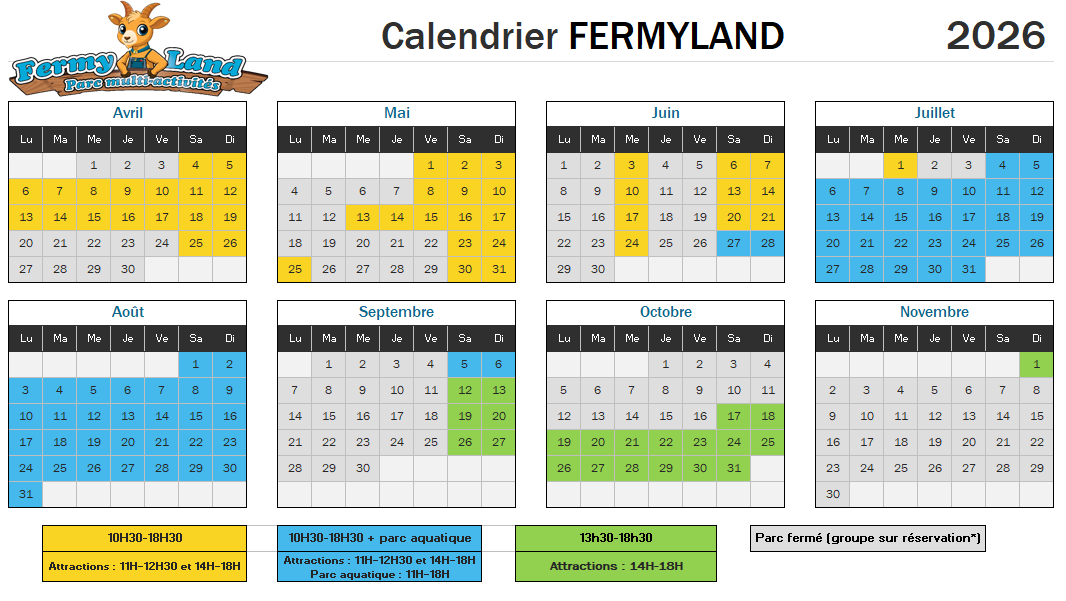 Calendrier d'ouverture